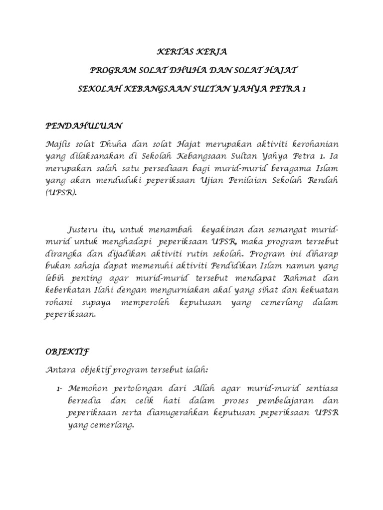 37 Full PDFs related to this paper. PENGENALAN Program ini dilaksanakan untuk membantu murid-murid sekolah ini meningkatkan prestasi masing-masing. Semasa mengangkat takbir bacakan niat solat hajat dalam hati.