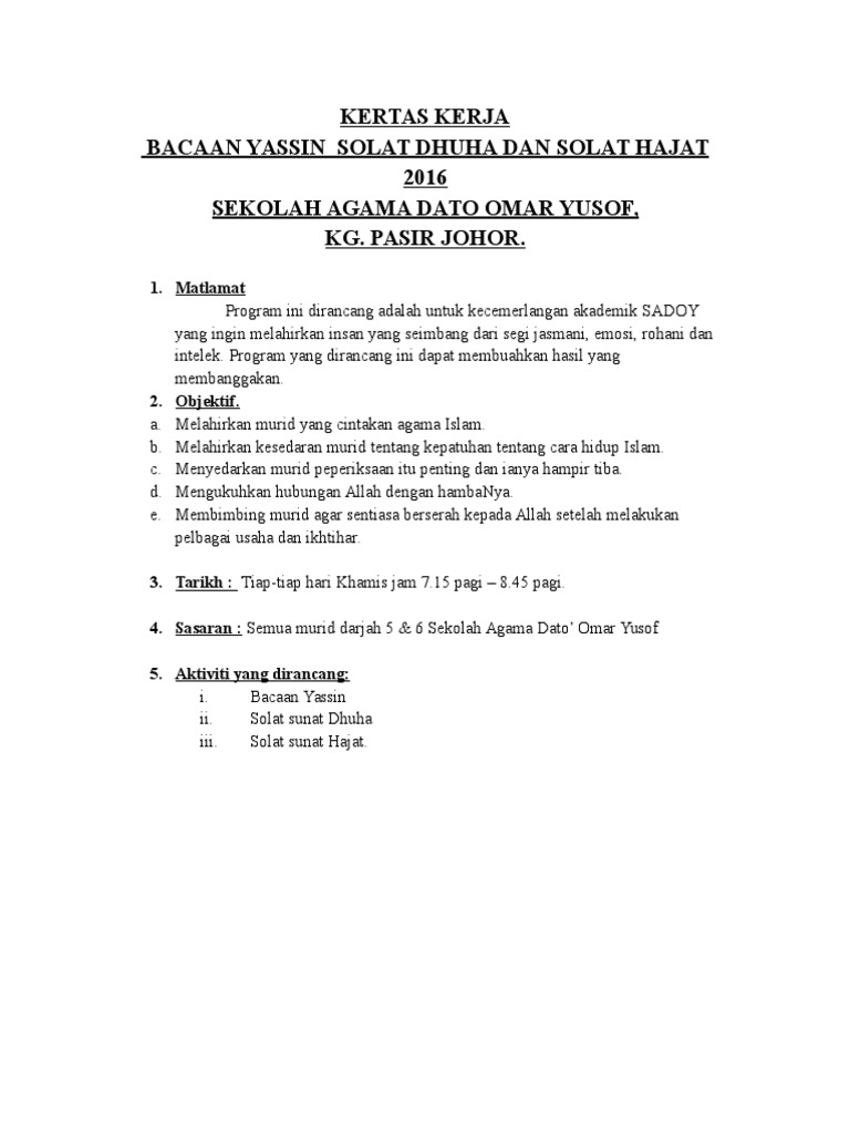 Kertas Kerja Majlis Bacaan Yassin Solat Dhuha Dan Solat Hajat Sadoy Pdf